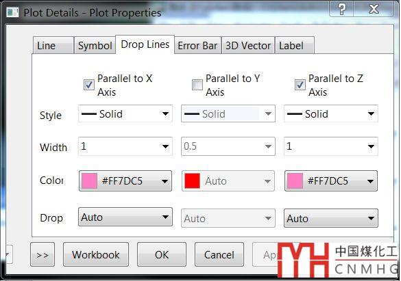 添加參考線Drop Lines:雙擊圖例框中的圖例符號,在彈出框中點(diǎn)擊Drop Lines選項(xiàng)卡,勾選平行于X軸、平行于Z軸的?,可得到圖11的效果。