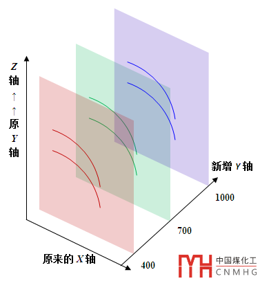 在傳統(tǒng)繪圖法(圖2)中,每個(gè)子圖分別對應(yīng)于400、700、1000三個(gè)序列。怎樣繪制3D散點(diǎn)圖,這需要將3個(gè)子圖按照圖3的方式編排。那么原來2D圖中的縱軸Y軸需要變?yōu)閆軸,3個(gè)序列需要新增為Y軸,即新增一個(gè)自變量y。