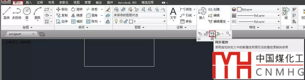 CAD不自動同步屬性,不知道是不是有部分用戶有類似的需求,就希望同名的屬性塊不僅屬性的值不同,屬性的標記或數(shù)量也不相同。CAD同時也提供了可以讓這些屬性同步的功能:ATTSYNC,如果使用功能區(qū)界面,可以在下面的位置找到此功能,如下圖所示。