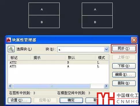 除了用這個同步屬性的功能外,用塊屬性管理器BATTMAN功能也可以完成同步,如下圖所示。