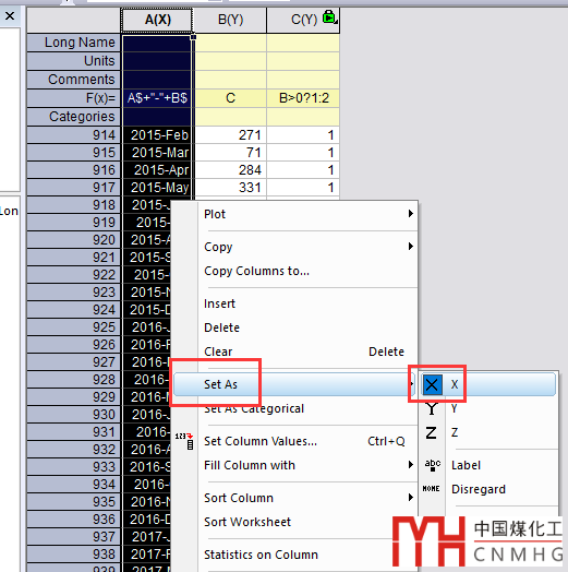 Set As、X,將第一列設(shè)為X軸。