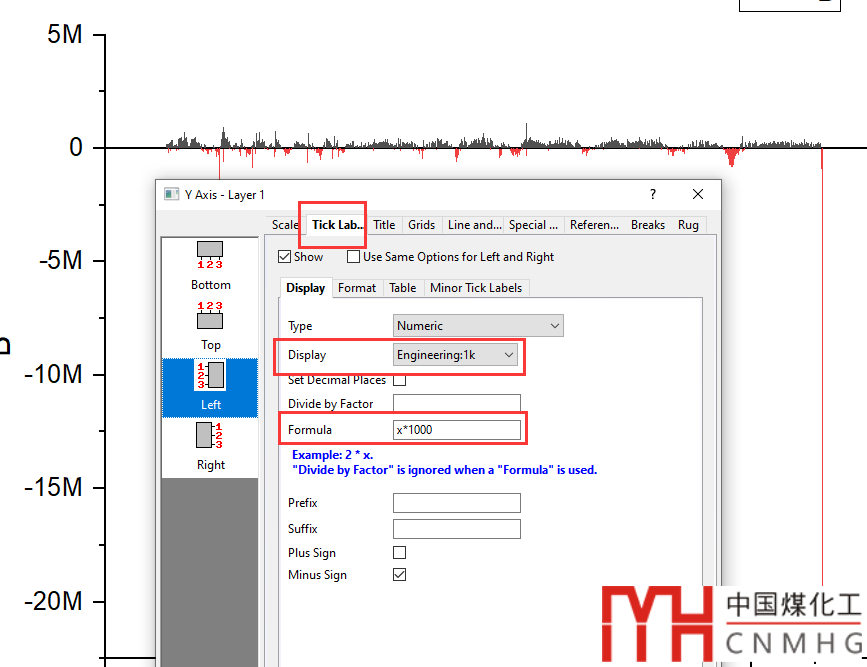 Tick Labels頁(yè)面,將Display選為Engineering。同時(shí)下載的數(shù)據(jù)的單位是千人,可以在Formula里輸入x*1000,將單位換算成人。