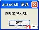 如果打開圖紙的時候出現(xiàn)“圖形文件無效”的提示,通常這個文件就無藥可救了,如下圖所示。