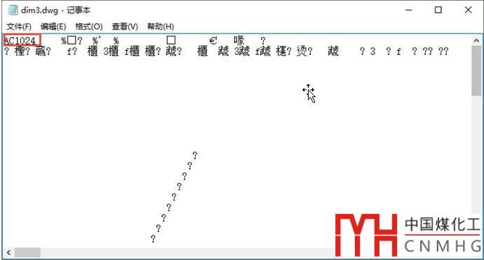 1、打開windows自帶的記事本,打開dwg文件,如圖所示。