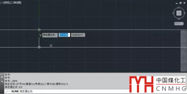 出現上述提示后,輸入H,回車,可以繪制水平的構造線。軟件會提示:指定通過點。