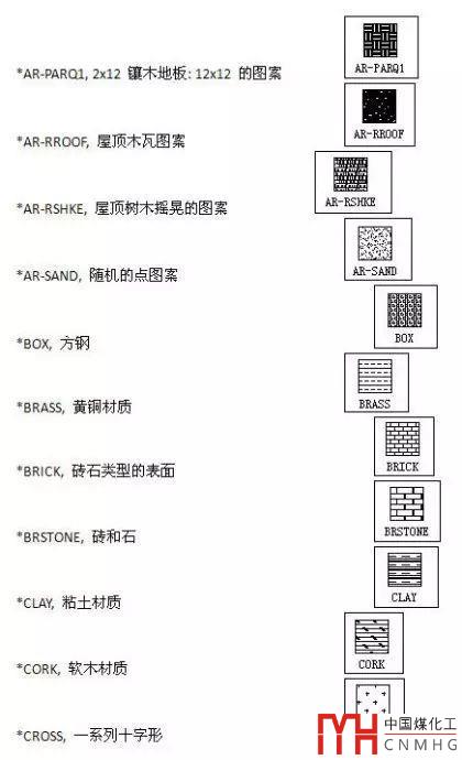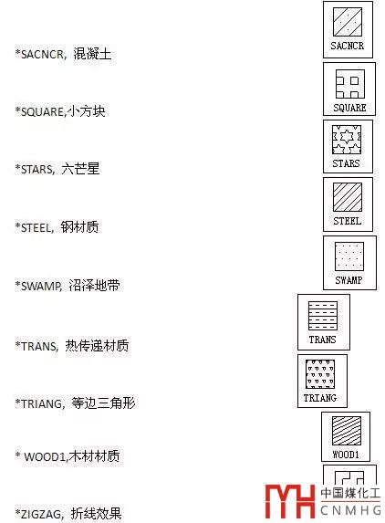 CAD常用的填充名稱和圖案對照表