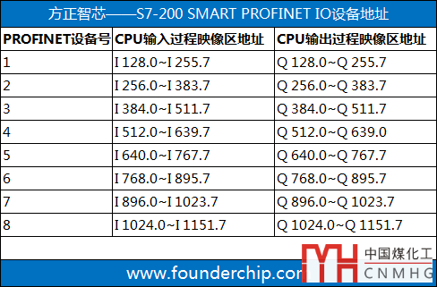 8個PROFINET IO設(shè)備的地址分配見下面的表格: