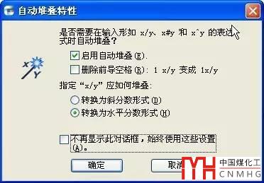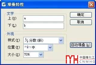 在這個對話框中可以設(shè)置堆疊的樣式、堆疊線的位置,和堆疊文字相對其他文字的大小比例。單擊“自動堆疊”按鈕,會彈出自動堆疊的設(shè)置,可以啟動自動堆疊和自動堆疊時文字的處理方式,如下圖所示。
