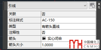 我們選中一個(gè)快速引線,打開(kāi)特性面板(CTRL+1),可以看到引線標(biāo)注使用的標(biāo)注樣式,如下圖所示。