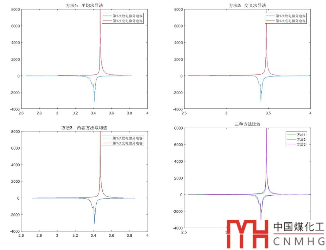 譚編首次提出的這兩種微分求導(dǎo)方法,可以對電池的充放電曲線數(shù)據(jù)進(jìn)行處理,計(jì)算得到微分電容曲線數(shù)據(jù),完美地繪制出電池的微分容量曲線,彌補(bǔ)了Origin繪圖軟件微分不成功的缺陷。