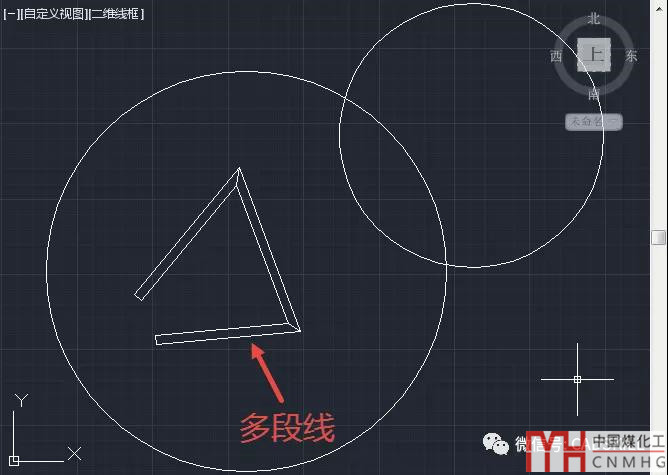 我們可以看到視圖已經(jīng)是“自定義視圖”,但從十字光標或UCS圖標沒有看出什么異常。這種狀況看上去對繪圖沒有影響,但還是會出現(xiàn)異常的現(xiàn)象,比如有寬度的多段線會變空心,如下圖所示。