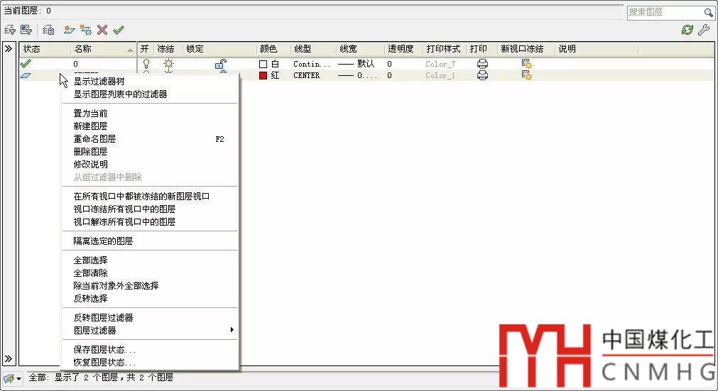 在一些對話框中可以利用右鍵菜單來設置選項,例如圖層管理器、多行文字編輯器等對話框,如下圖所示。