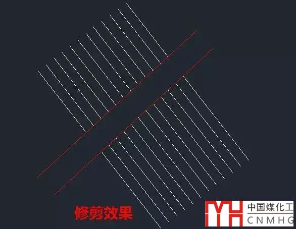 只要修剪的部分還有與多條線的交點(diǎn),不如直接選擇邊界來修剪,只是在選擇修剪邊的時(shí)候多一次兩次單擊,修剪時(shí)就會(huì)省去很多次點(diǎn)擊。如下圖中要修剪兩條紅線之間的橫線也是類似的。