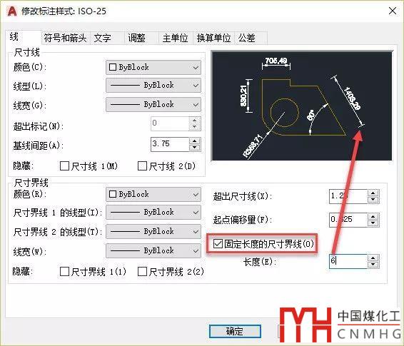 也就是標注時尺寸界限的長度不能大于設置的固定長度,但可以小于設置的固定長度。