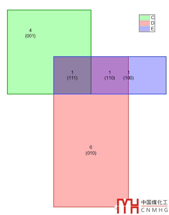 For 2/3-way plot, the size of each overlapped area can be dynamicallylinked to actual count ratio.【2-3組數(shù)據(jù)集合的Venn圖,覆蓋面積與集合中的元素數(shù)量成比例關(guān)系】