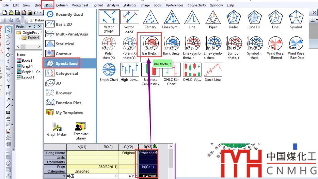 在最新的OriginLab OriginPro 2020b Beta版中,增加了極坐標(biāo)系中的條形圖繪圖模板,正好可以用來繪制上述圖形。