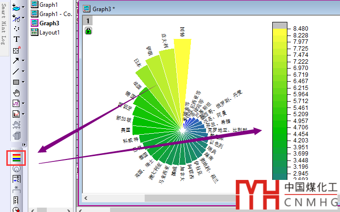 選中極坐標(biāo)系中的條形圖,點擊左側(cè)的Color Scale工具,添加Color Scale Bar。