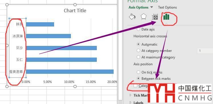 雙擊y軸,切換到坐標(biāo)軸選項(xiàng)(axis options),下拉選中“Categories in reverse order“,使得y軸反轉(zhuǎn)。