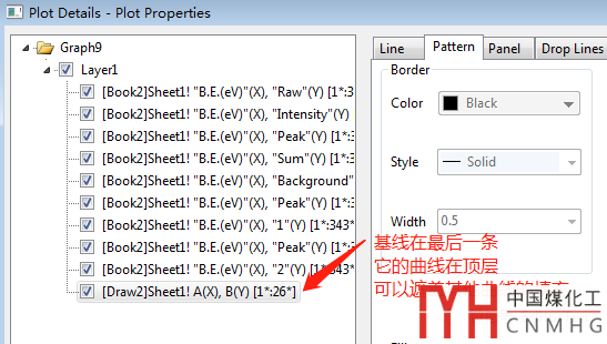我們還需要加入背景基線數(shù)據(jù),將其線下填充模式為白色,將將透明度設(shè)置為0,(不透明),而且需要將基線曲線放置在所有曲線的上方,用以掩蓋其他曲線的填充色。