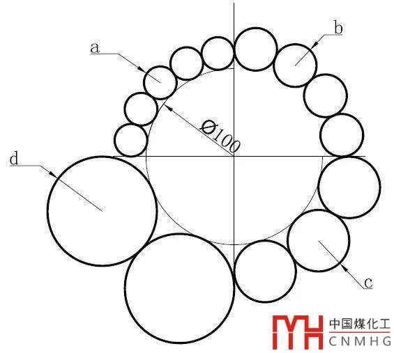 這張圖看起來(lái)復(fù)雜,其實(shí)不難,就是需要畫幾條等分的輔助線,然后用相切相切相切畫圓就好了。