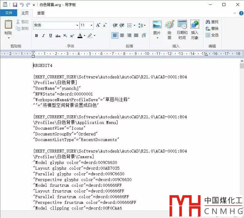 CAD的配置文件*.ARG文件其實(shí)就是一個(gè)保存注冊(cè)表信息的文本文件,我們輸出一個(gè)ARG文件后用記事本打開(kāi)看一下,如下圖所示。