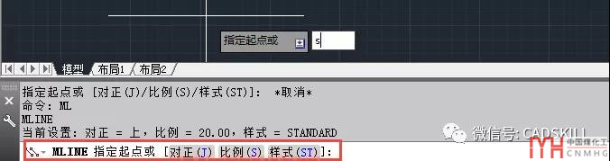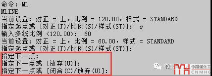 指定完多線起點(diǎn)后,再指定其他點(diǎn)的時(shí)候就沒有機(jī)會(huì)輸入S來設(shè)置比例了,如下圖所示。