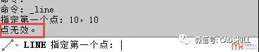 如果在命令行我們輸入了10,10時(shí)不會(huì)有任何提示,等我們回車確認(rèn)的時(shí)候,會(huì)提示點(diǎn)無效,如下圖所示。