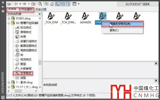 打開設(shè)計(jì)中心(CTRL+2),在設(shè)計(jì)中心中找到你修改文字樣式的圖紙,展開圖紙的文字樣式,然后右鍵,選擇添加文字樣式,就可以將文字樣式添加過來,如下圖所示。