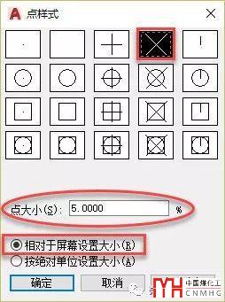 點(diǎn)的顯示效果是由點(diǎn)樣式的設(shè)置決定的,在格式菜單中選擇點(diǎn)樣式或直接輸入DDPTYPE命令打開點(diǎn)樣式設(shè)置對話框,設(shè)置如下圖所示。