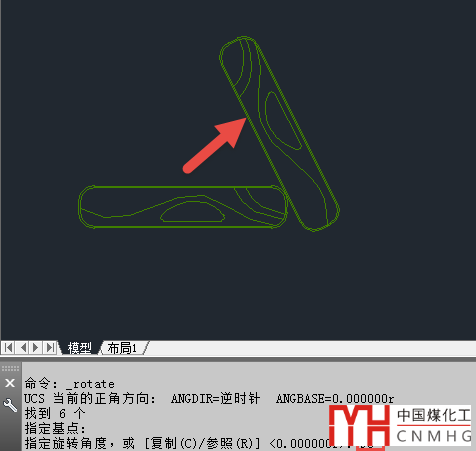 不知道大家有沒有遇到過這樣的問題,旋轉(zhuǎn)一個圖形,設(shè)定基點后,輸入90,但旋轉(zhuǎn)的卻不是90度,如下圖所示。