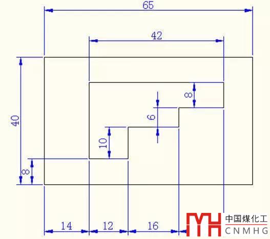 繪圖步驟:先建立兩個圖層分別是繪圖、尺寸標(biāo)注圖層;外框從兩個方向(上、右)利用正交模式畫,內(nèi)框從點(diǎn)(10,6)開始,利用正交模式和相關(guān)線段尺寸畫出;最后按照原圖進(jìn)行尺寸標(biāo)注。