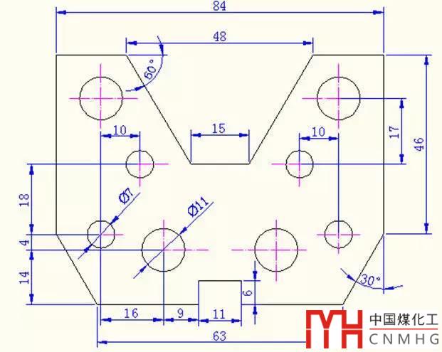 審圖:需要三個圖層,分別為繪圖、尺寸標(biāo)注、輔助線圖層圖層;此圖為左右對稱圖形課通過鏡像命令畫圖,先畫左半外框和里面的四個圓即可