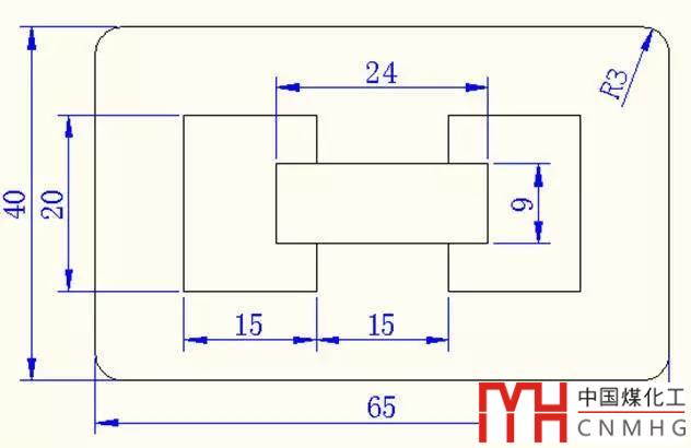 繪圖步驟:建立兩個圖層分別是繪圖、尺寸標(biāo)注圖層,使用RECTANG命令和相關(guān)坐標(biāo)繪制圓角矩形框,分別用兩點(diǎn)坐標(biāo)法畫三個矩形框,剪切多余的線段;進(jìn)行尺寸標(biāo)注。