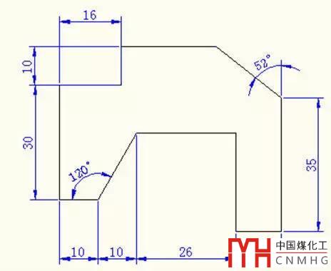 審圖:本題使用相對坐標(biāo)畫圖,需建立兩個圖層分別是繪圖、尺寸標(biāo)注圖層;利用正交模式畫水平線豎直線和利用極坐標(biāo)追蹤模式畫斜線。