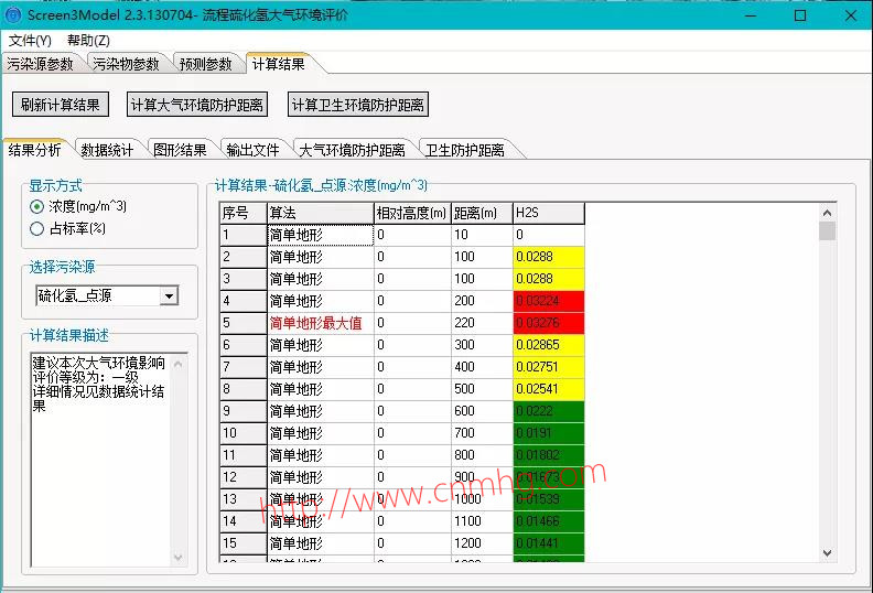 Screen3Model 是根據(jù) Screen3 模式開發(fā)的界面化軟件。程序以 Screen3 模式為核心,提供一個良好的用戶界面,以提高用戶預測的方便性。同時,軟件提供了功能較強的數(shù)據(jù)分析和圖形處理功能。軟件將 Screen3 模型、大氣導則中的大氣環(huán)境防護距離模式和衛(wèi)生防護距離模式有機的結合在一起,對其主要功能進行了封裝,并根據(jù)國內(nèi)環(huán)評特點進行了外部的擴展。