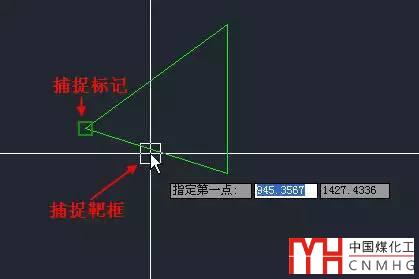 當(dāng)設(shè)置了某些捕捉選項(xiàng)并打開(kāi)了對(duì)象捕捉后,在繪圖或編輯圖形時(shí),當(dāng)提示定位點(diǎn)或距離參數(shù)時(shí),光標(biāo)在靠近圖形對(duì)象的邊界或頂點(diǎn)時(shí),在滿足條件的特征點(diǎn)處就會(huì)出現(xiàn)捕捉標(biāo)記,此時(shí)單擊就可以將坐標(biāo)定位到捕捉標(biāo)記出現(xiàn)的位置。