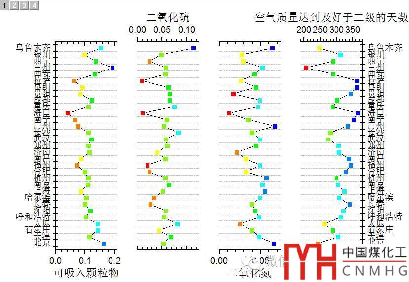 將圖層2-4鏈接到圖層1,其X軸的范圍設(shè)置為Straight (1 to 1),即具有相同的X軸范圍(再次提醒:豎向的軸(城市)依然是X軸,盡管變了位置)。