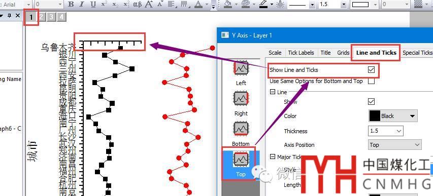 將圖層2和4的橫軸的標(biāo)題和標(biāo)簽顯示在上方