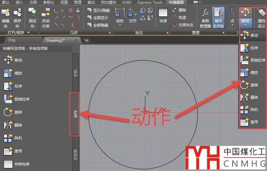 提供用于向塊編輯器中的動態(tài)塊定義中添加動作的工具。 動作定義了在圖形中操作塊參照的自定義特性時,動態(tài)塊參照的幾何圖形將如何移動或變化。 應(yīng)將動作與參數(shù)相關(guān)聯(lián)。