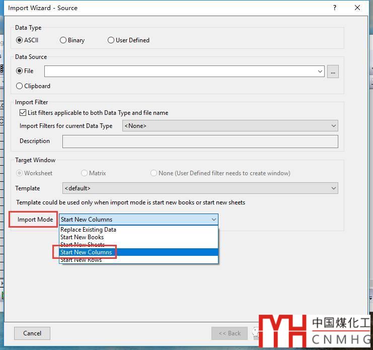 導(dǎo)入數(shù)據(jù)時,可以選擇Start new columns這個import mode,將同類數(shù)據(jù)導(dǎo)入到單個worksheet里,也便于后續(xù)的數(shù)據(jù)分析與繪圖。