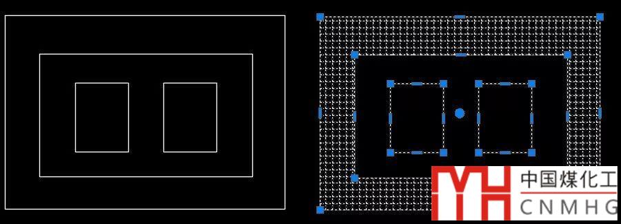 如果你的CAD版本夠高,不用生成邊界,只需選中此填充,其實(shí)就可以看到填充的邊界線,不光包含外邊兩個矩形,還包含里面的兩個小矩形,如下圖所示。