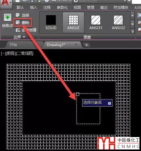 如果我們不想要中間嵌套的孤島,在CAD高版本很簡單,即使已經(jīng)沒有關(guān)聯(lián)的邊界,直接選中填充,然后在填充面板中單擊刪除按鈕,就可以將多余的邊界刪除。