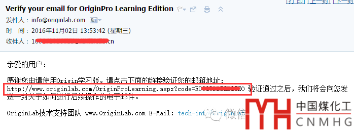 Verify your email for OriginPro Learning Edition,注冊完成后會收到這個驗證郵件,驗證你的注冊信息。復制驗證鏈接到瀏覽器打開驗證。