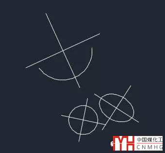 3、輸入CLINE命令,回車,選擇要繪制中心線的圓、橢圓、弧,根據(jù)提示拖動確定中心線的方向,就可以繪制這些圖形的中心線,如下圖所示。