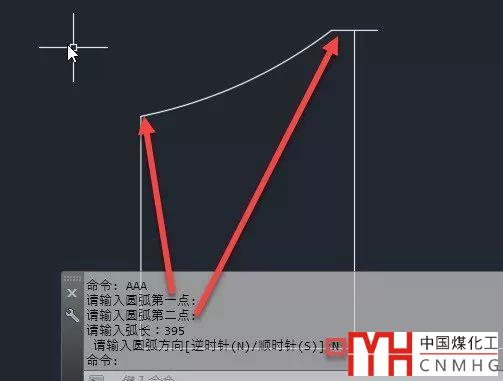 3、輸入弧長,回車,命令行會提示順時(shí)針S和逆時(shí)針N,就繪制出了所需的圓弧。