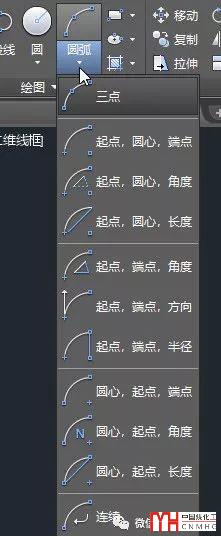 CAD雖然提供了十余種畫弧的方法,但給出的三個(gè)條件可以是點(diǎn)、角度、半徑、弦長、方向,卻沒有弧長這個(gè)條件,如下圖所示。