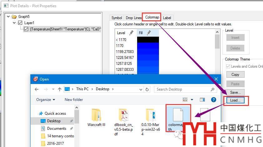切換到Colormap標簽頁,點擊Load按鈕,導入前面保存的colormap.oth文件,使其配色與Ternary Contour圖一樣。