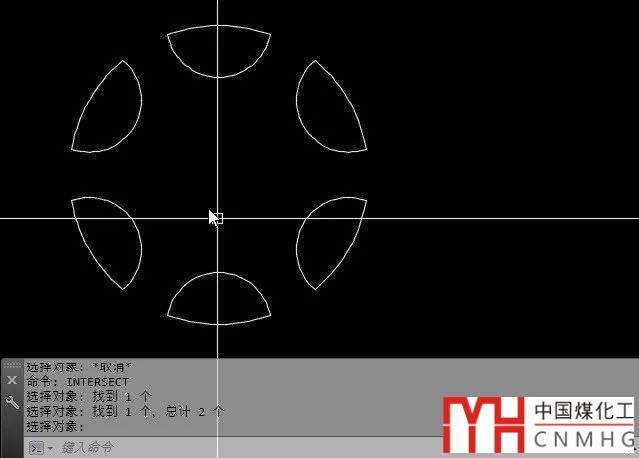 3、執(zhí)行相交INTERSECT(INT)命令,分別選擇大圓和合并的小圓,就得到了最終的圖形,如下圖所示。