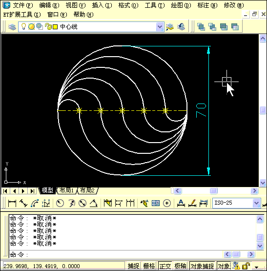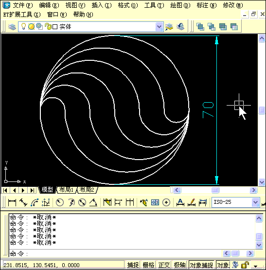 這張圖雖然只給出了一個(gè)尺寸,但借助定數(shù)等分DIV將70長(zhǎng)的直線6等分,還是比較容易畫出來的。而這里有兩個(gè)不同的視頻,分別是兩種思路,大家可以先看一下。