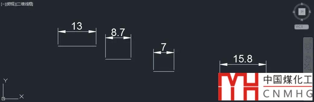 1、開一張空圖,繪制幾條直線,長度可以是13、8.7、7、15.8等隨意的數(shù)值,然后輸入DLI,用默認(rèn)的標(biāo)注樣式在給這些直線標(biāo)注上尺寸, 如圖所示。